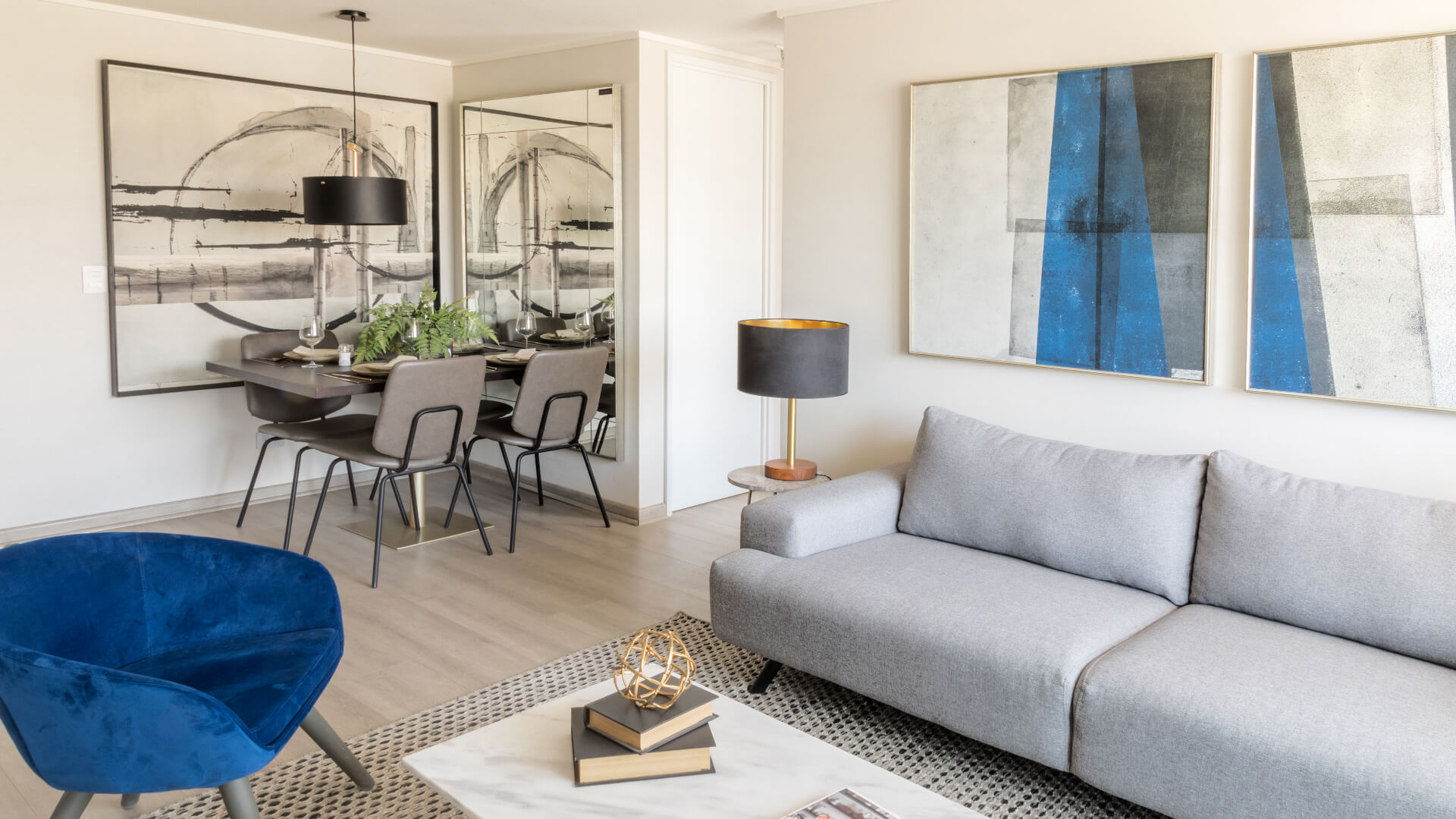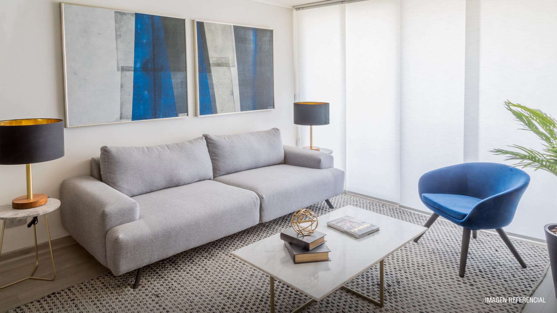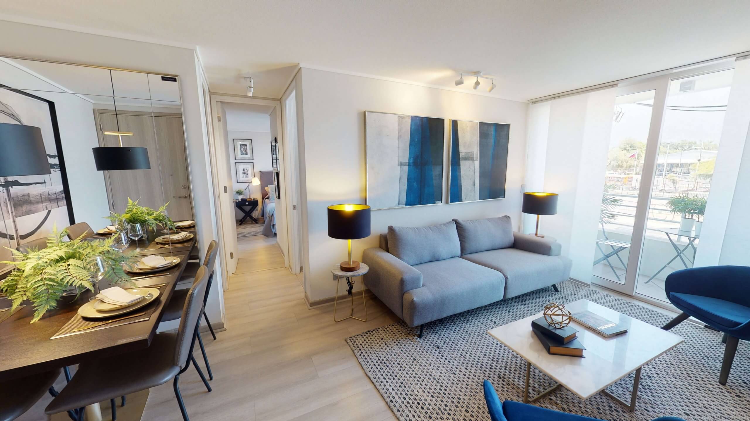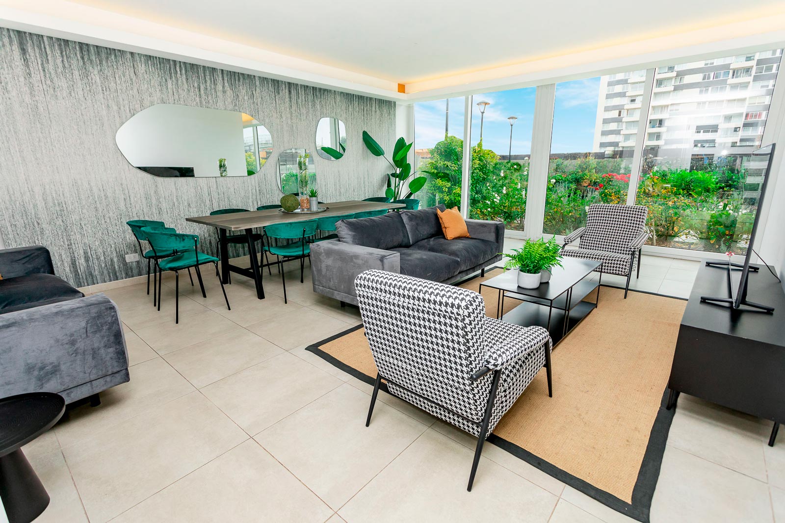 Ventanas de termopanel con marco de PVC, Piso fotolaminado, Baño principal con mampara de cristal, Cocina equipada con horno, encimera y campana, Cubierta de cocina en granito, Vanitorio con cubierta de mármol.